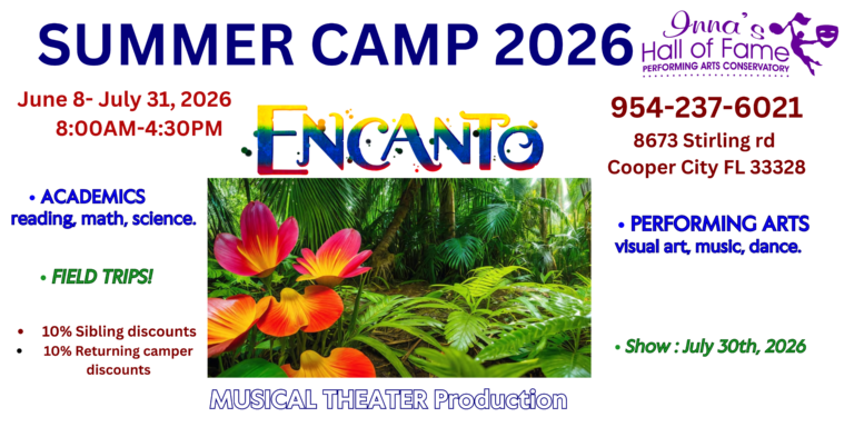Inna's Hall of Fame - Summer Camp Program Registration Form Early Bird registration – 10% off tuition! Ends, March 20, 2026! VISUAL ART ACTING MUSIC DANCE PERFORM